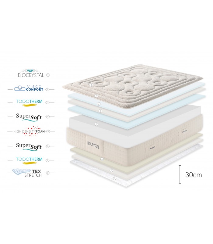 Die Matratze Biocrystal Selenium verfügt über eine moderne Struktur, die ergonomischen Komfort mit Wellness-Technologien verbindet.