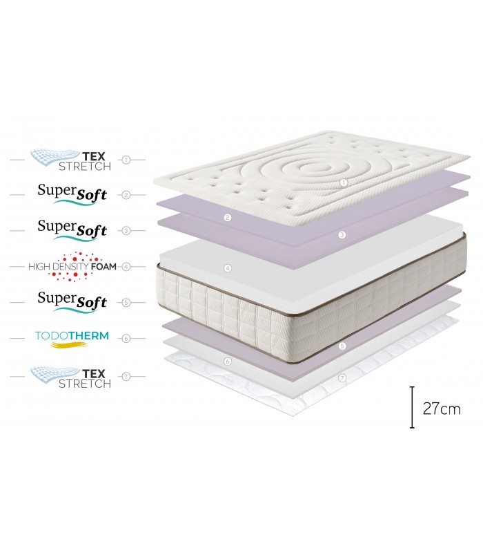 Le noyau HR Haute densité NatureFoam 3.0 garantit l'indépendance des lits, ce qui signifie que les mouvements d'un dormeur n'affectent pas l'autre. Vous pouvez ainsi profiter d'un sommeil paisible et sans perturbations, même si vous partagez le lit.